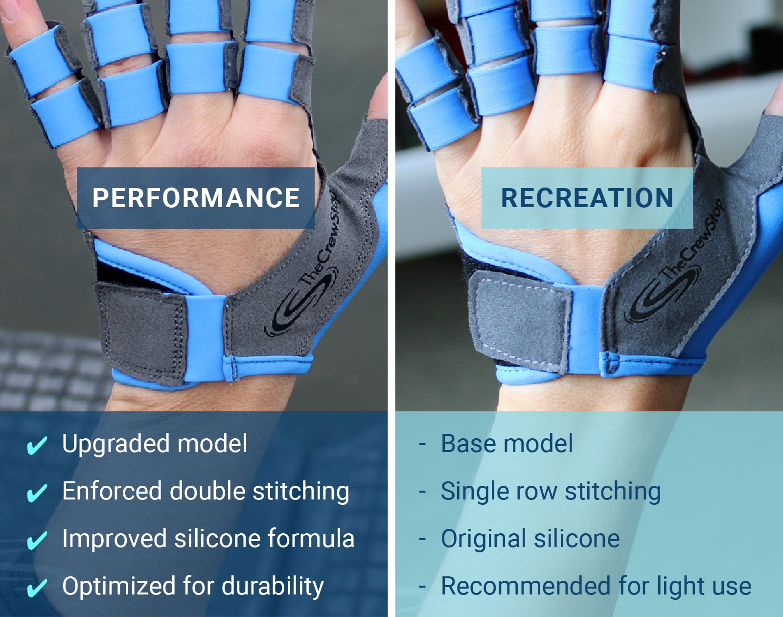 Modeled after our Sculler design with additional coverage on the fingers and an included pinky. A grippy palm on right and left hands.